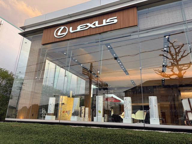 レクサス北大路店は北大路通に面した大ウィンドウをもつ外観で、景観を考慮したディスプレイを心掛けてきました。かねてよりこの空間を地元学生の方に活用いただきたいとの考えがあり、今回の作品展示となりました。