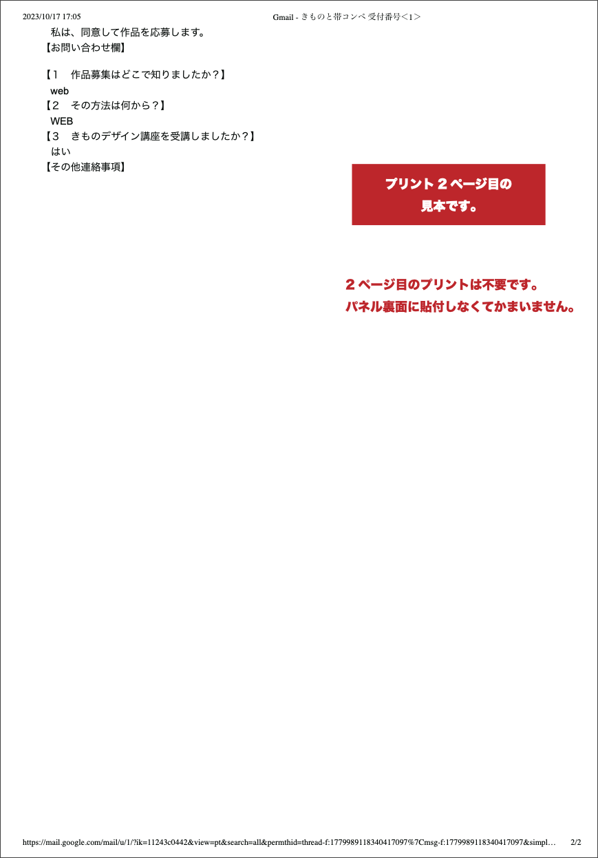 受付番号が記載されてる1頁目のプリントだけをパネルの裏面右下に貼付してください。
