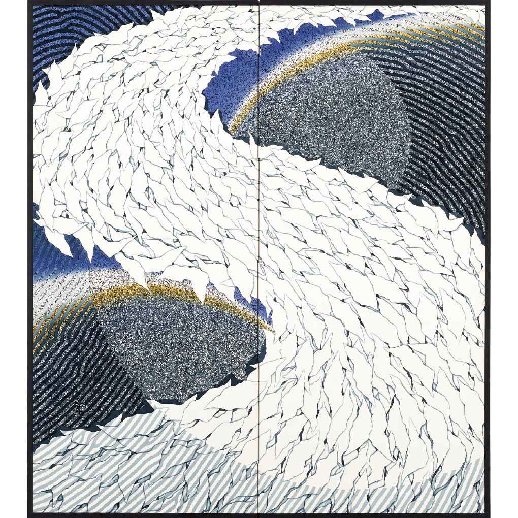 絹布・酸性染料/蠟纈染・蠟フブキ(撒き蠟)
