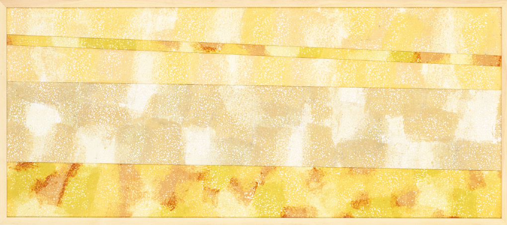 いまふく ふみよ IMAFUKU Fumiyo 色の中の色 −Geological layer− 絹、植物染料(苅安、梔子、黄花コスモス、槐(エンジュ)、Quebracho、ログウッド) 捺染/パネル/95cm×216.5cm 前のページへ 次のページへ