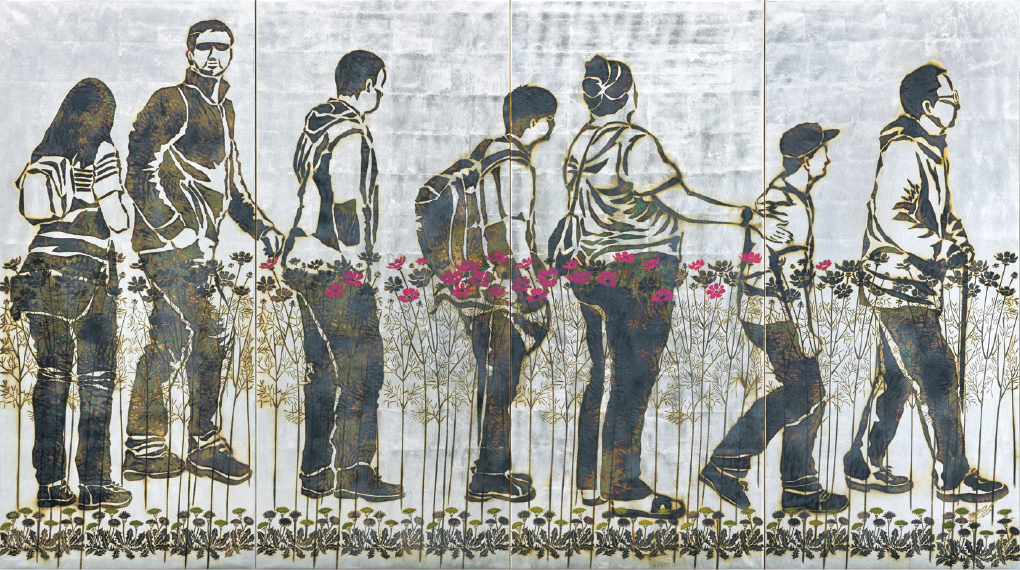 和紙、純銀箔、顔料/型絵耀変銀箔彩色技法(オリジナルテクニック)