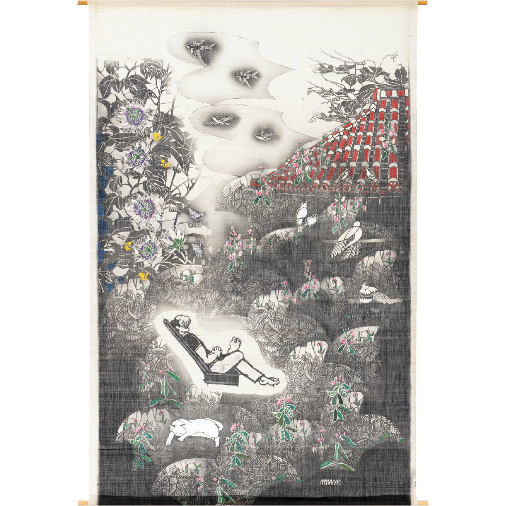 麻布/型絵染、糊防染、ドローイング