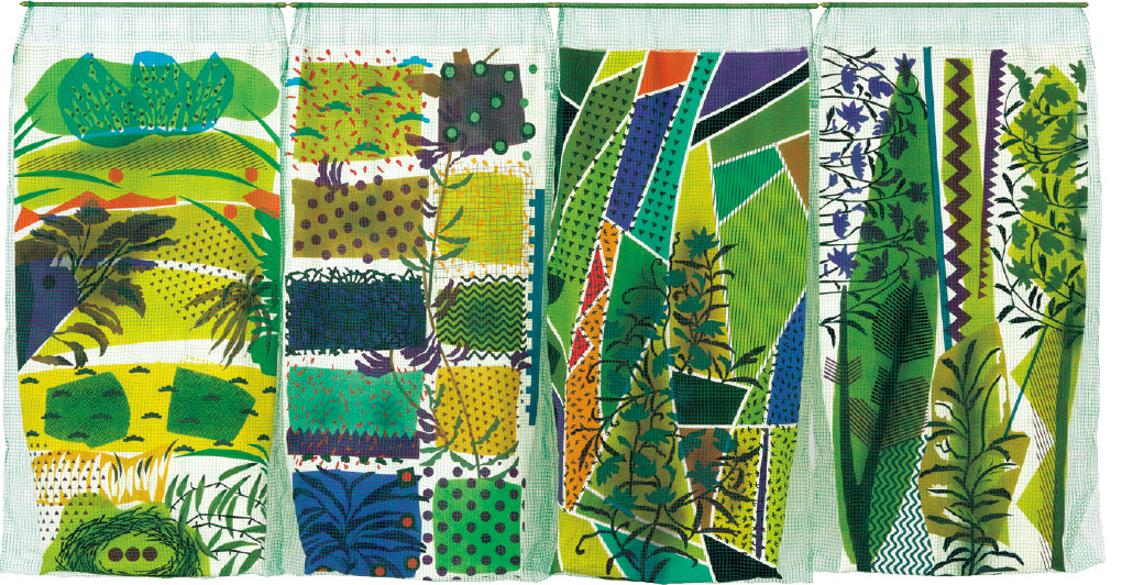 綿布、ナイロンネットなど/ハンドスクリーンプリントその他の混合技法