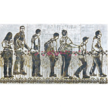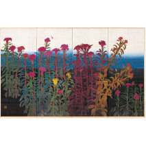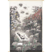 麻田 脩二 ASADA Shuji (山のあなたの空遠く)幸いすむと人の言う 木綿/stencil(own technique) 、air brush パネル/176cm×326cm 有田 やえ ARITA Yae 暁の道標 別珍/蠟染め パネル/200cm×308cm 井隼 慶人 IHAYA Keijin 晩春の言葉 木綿/蠟防染 パネル/161cm×140cm いまふく ふみよ IMAFUKU Fumiyo 色の中の色 −Geological layer− 絹、植物染料(苅安、梔子、黄花コスモス、槐(エンジュ)、Quebracho、ログウッド)/捺染パネル/95cm×216.5cm 宇良 京子 URA Kyoko 風景 絹、酸性染料、顔料/型・糊防染パネル/170cm×170cm 加賀城 健 KAGAJO Ken さようならのふくろ 綿布、直接染料、反応性染料/浸染、スキージと指による糊置、スプレー染、縫製袋/218cm×218cm 加藤 由起 KATO Yuki キツネの嫁入り 麻/蠟染め、ダック防染掛軸/180cm×100cm、180cm×85cm、180cm×100cm 金井 大輔 KANAI Daisuke 時の風景 綿布、顔料/シルクスクリーン捺染パネル/100cm×200cm×9cm、100cm×50cm×9cm 兼先 恵子 KANESAKI Keiko 神苑(しんえん)の水無月夜(みなづきよ) 麻布/型染及びステンシル、縫い取りタペストリー/190cm×60cm 2枚組 河田 孝郎 KAWATA Kohrow 「タンカ〇△□」Ⅰ、Ⅱ、Ⅲ 絹紬銀通し、酸性染料/糊防染パネル/110cm×80cm 3点 倉内 啓 KURAUCHI Hiroshi日下部 雅生 KUSAKABE Masao 季を踏み越えて 和紙、純銀箔、顔料/型絵耀変銀箔彩色技法(オリジナルテクニック)パネル/175cm×310cm 倉内 啓 KURAUCHI Hiroshi 終わりと始まり 和紙、顔料、銀箔/オリジナルテクニック、摺箔パネル/150cm×160cm 近藤 卓浪 KONDO Takuro キス・フグにmaze 絹/蠟染めパネル/178cm×168cm---------------- 鰤に流星図 絹/蠟染めパネル/178cm×168cm 斎藤 高志 SAITO Takashi 忘れ草 麻生平、反応染料、金箔、黒箔/捺染、裏染屏風/178cm×152cm 澁谷 和子 SHIBUYA Kazuko<特別出品>---------------- 蕪(かぶら) 麻布、藍染/型染のれん/180cm×180cm---------------- スノードロップ 綿布、藍染/型染着尺/1300cm×38cm 清水 佑季 SHIMIZU Youki モX°」タ')・/"ナ (モメンタリゾナ)綿布/蠟染めパネル/180cm×215cm 白井 聡子 SHIRAI Satoko この町の声を聴く 絹、酸性染料/型染パネル/200cm×200cm 白河 英治 SHIRAKAWA Eiji 清流 綿ブロード/蠟染め、型染めパネル/195cm×125cm 髙谷 光雄 TAKAYA Mitsuo 閑靖 絹(信州紬)/蠟染め額/70cm×53cm 田島 征彦 TAJIMA Yukihiko 「石橋図」−曽我蕭白へのオマージュ− 木綿、レマゾール染料/型染タペストリー/250cm×250cm 舘 正明 TATE Masaaki stream 綿布、反応染料/蠟染めパネル/各161cm×161cm 玉井 佐知 TAMAI Sachi 男Ⅶ 絹布、酸性染料、顔料/型染、糊防染タペストリー/195cm×90cm 中井 貞次 NAKAI Teiji 幻映(げんえい) 麻/蠟防染を施し藍染を繰り返しながら他の植物染料をかけ合わせ浸染による染法パネル(額装)/74cm×105cm 長尾 紀壽 NAGAO Norihisa 「追憶」−recollection 麻布/型絵染、糊防染、ドローイングタペストリー/175cm×105cm 柳楽 剛 NAGIRA Atsushi 猩々蜻蛉 麻(生平)/蠟染め、色糸目屏風(四曲)/160cm×260cm ばんば まさえ BANBA Masae 漂舶 木綿/絞り染タペストリー/296cm×194㎝ 福本 繁樹 FUKUMOTO Shigeki 《エンヤーコーラヤ、ドッコイ ドッコイ ドッコイナ》 綿布、レマゾール染料/なるほど染め、布象嵌パネル5点組/230cm×345cm×9cm 細田 あずみ HOSODA Azumi air line 絹、酸性染料/蠟纈着物、訪問着/180cm×150cm 松本 健宏 MATSUMOTO Takehiro 瀧景 ♯3 木綿/蠟纈パネル/183cm×262cm むらた ちひろ MURATA Chihiro 夢の穴 木綿、染料/染色パネル/125cm×130cm 室田 泉 MUROTA Izumi 「Lily」 綿布、麻布、和紙、アート紙/サイアノタイププロセスパネル/180cm×320cm 森口 邦彦 MORIGUCHI Kunihiko 袋名古屋友禅染帯 位相市松亀甲文 絹(縮緬)/友禅袋名古屋帯/315cm×31cm 八幡 はるみ YAHATA Harumi GARDEN2025 綿布、ナイロンネットなど/ハンドスクリーンプリントその他の混合技法布/190cm×360cm×10cm 山下 茜里 YAMASHITA Akari UNSTOPPABLE №1 綿布、反応染料/蠟染めパネル/180cm×180cm