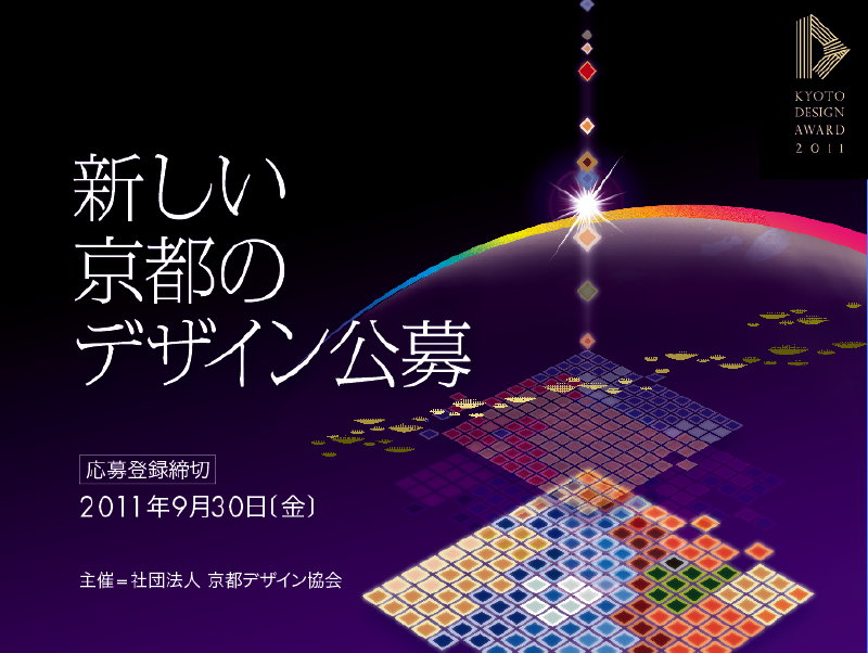 京都には1200年の歴史が培った魅力的なデザインが多数存在しています。それらは現代においても引用され、新たな作品や商品開発に繋がっています。KyotoDesignAward 2011「京都デザイン賞」では、京都の伝統と文化を守りながら、新たなデザイン手法を用いて、新しい京都のデザインの創出を図る作品を募集します。