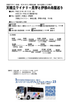 伊根出発PM4:00→途中トイレ休憩1回→京都にはPM6:00頃を予定。
