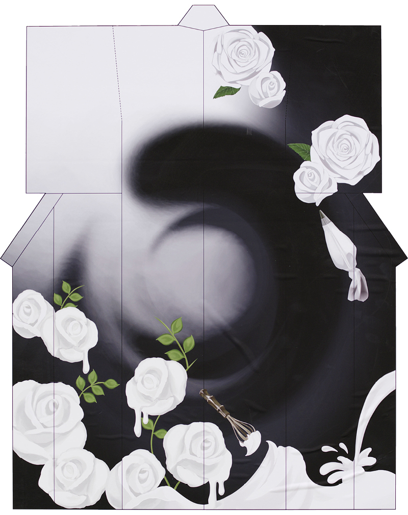 生クリームをモチーフとして、高まり続けるきものの文化を表現した。