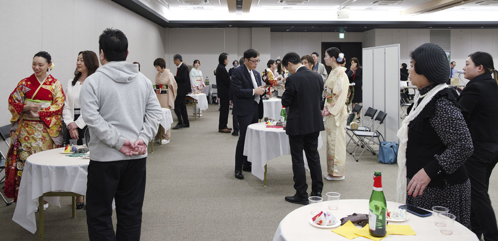 休憩のちに、同会場にて自由参加による交流会を行い、来賓、大学関係者、入賞・入選学生の懇談が行われた。
