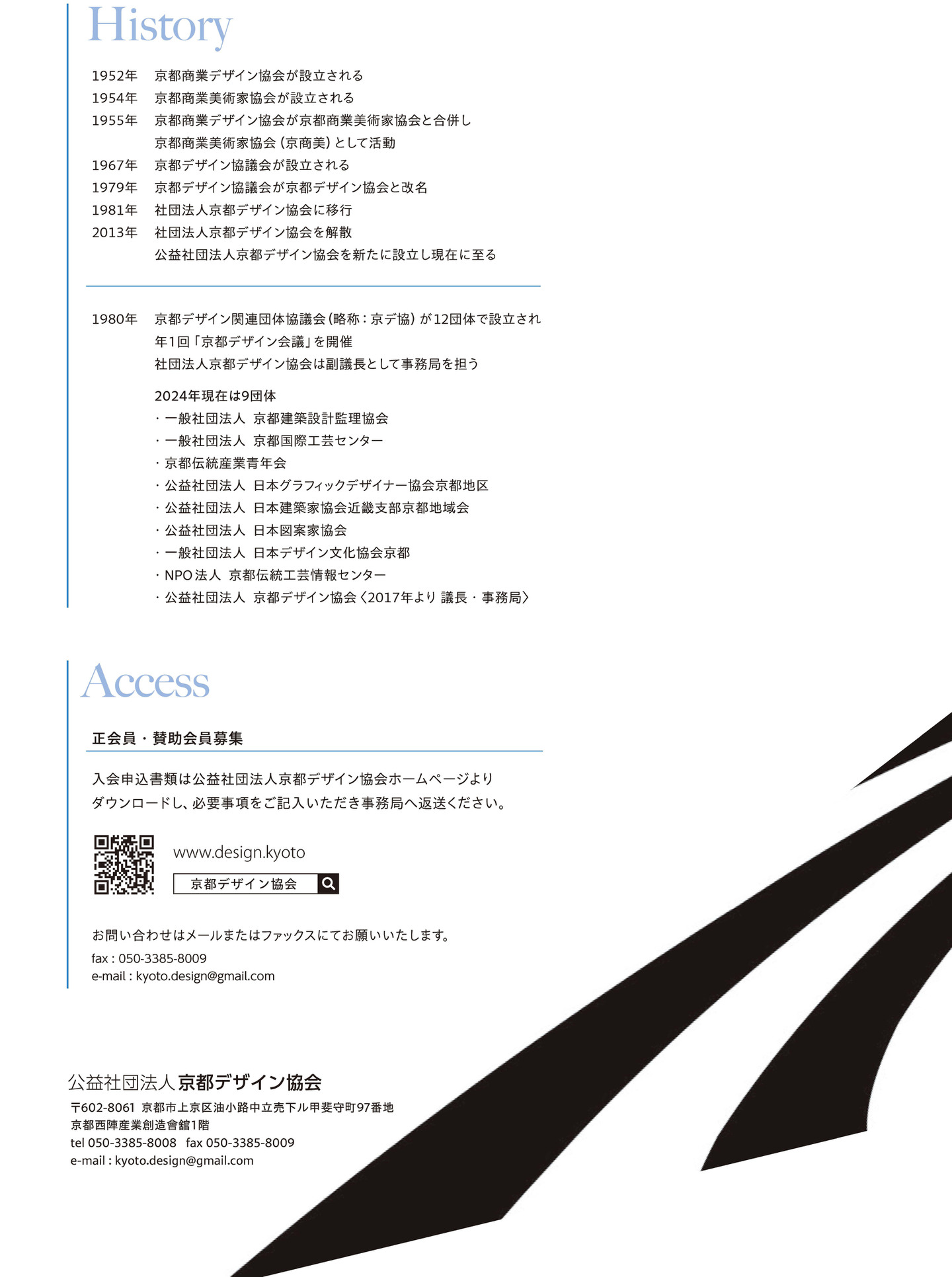 〒602-8061 京都市上京区油小路中立売下ル甲斐守町97番地 西陣産業創造會舘1階 FAX 050-3385-8009 kyoto.design@gmail.com